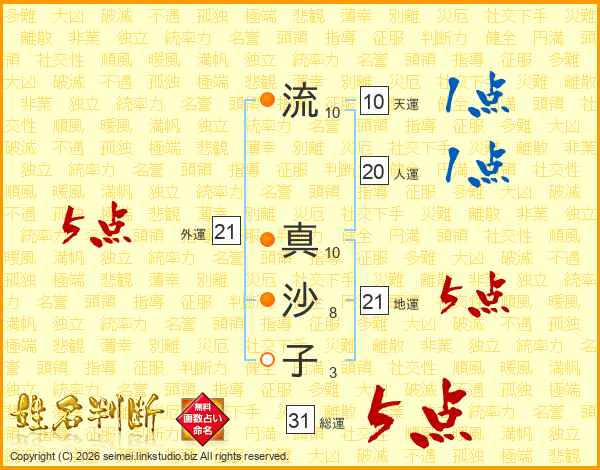 流真沙子さんの総運は31画の5点!