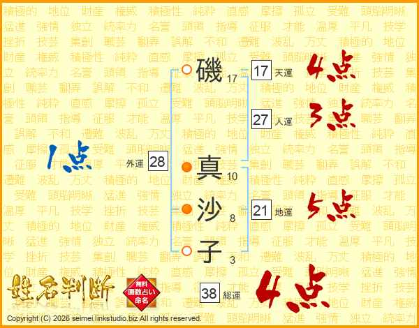 磯真沙子さんの総運は38画の4点!