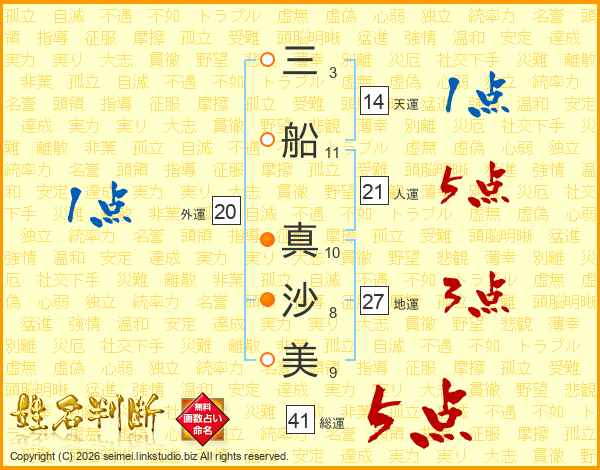三船真沙美さんの総運は41画の5点!