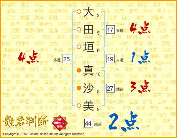 大田垣真沙美さんの総運は44画の2点!