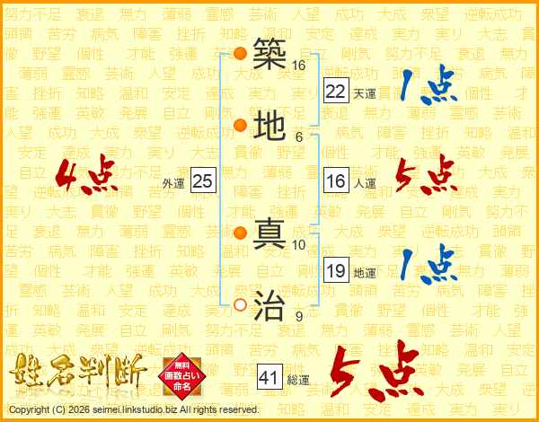 築地真治さんの人運は16画の5点!