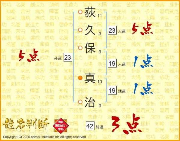 荻久保真治さんの天運は23画の5点!