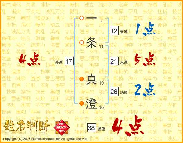 一条真澄さんの総運は38画の4点!
