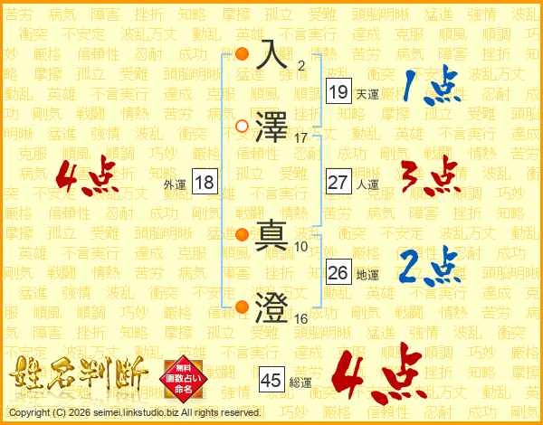 入(2画)澤(17画)  真(10画)澄(16画)