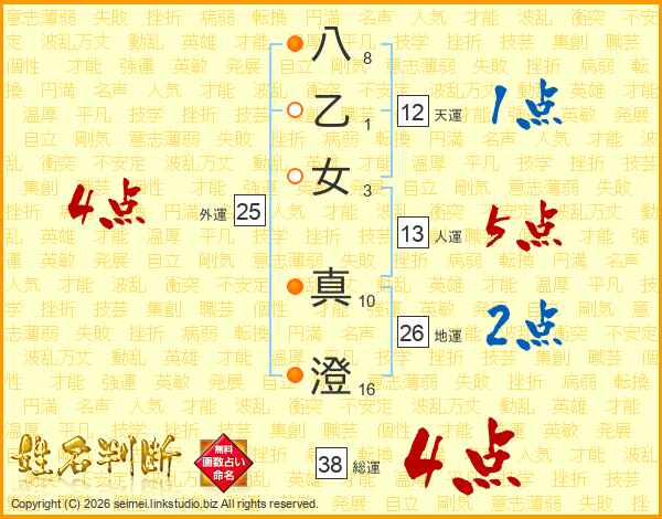 八乙女真澄さんの総運は38画の4点!
