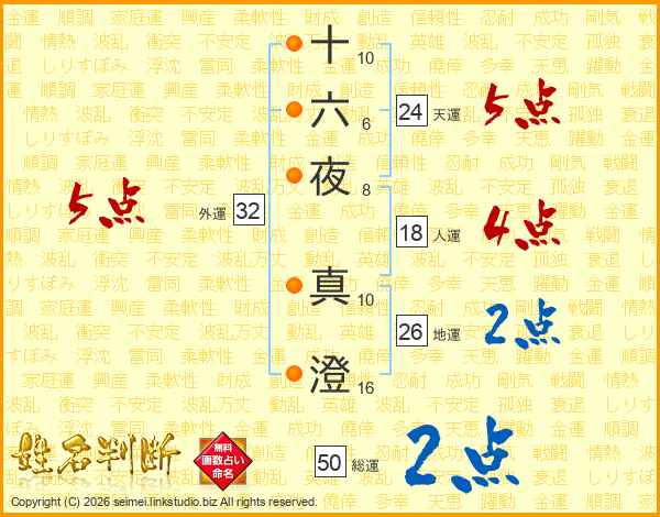 十(10画)六(6画)夜(8画) 真(10画)澄(16画)