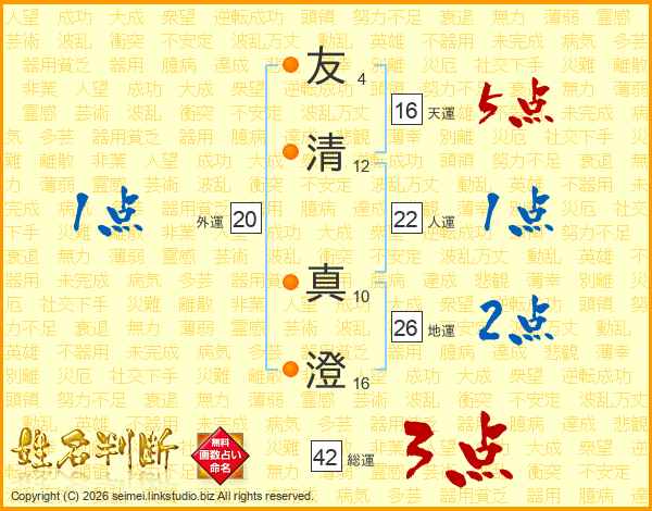 友清真澄さんの地運は26画の2点!