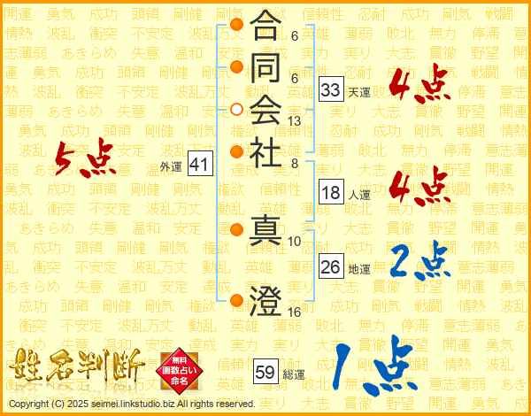 合(6画)同(6画)会(13画)社(8画)  真(10画)澄(16画)