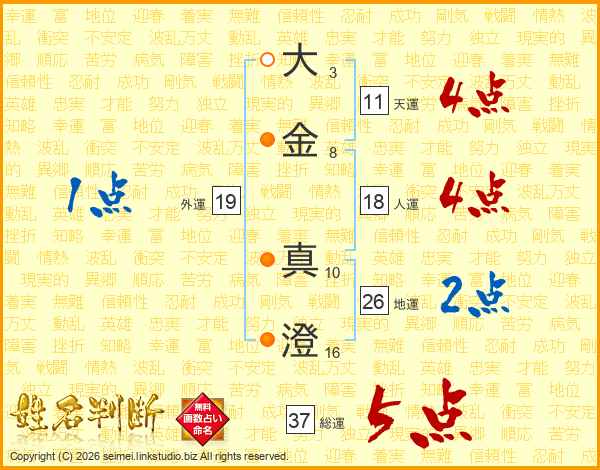 大金真澄さんの地運は26画の2点!