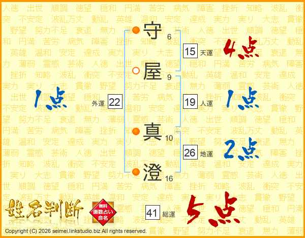 守屋真澄さんの総運は41画の5点!