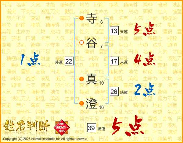 寺谷真澄さんの天運は13画の5点!