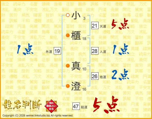 小(3画)櫃(18画) 真(10画)澄(16画)