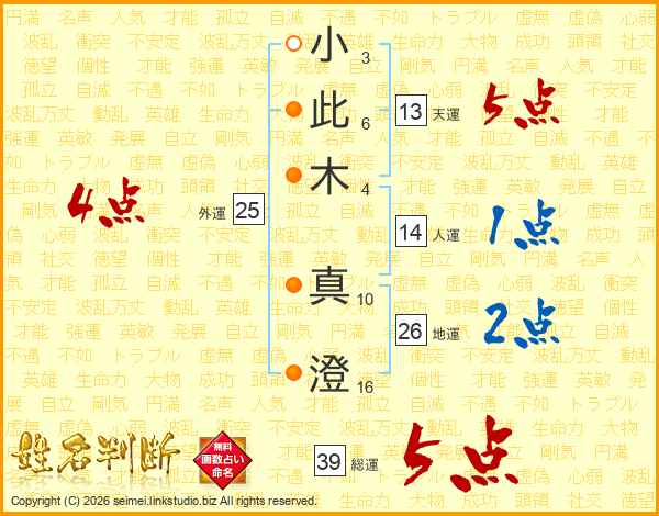 小(3画)此(6画)木(4画) 真(10画)澄(16画)