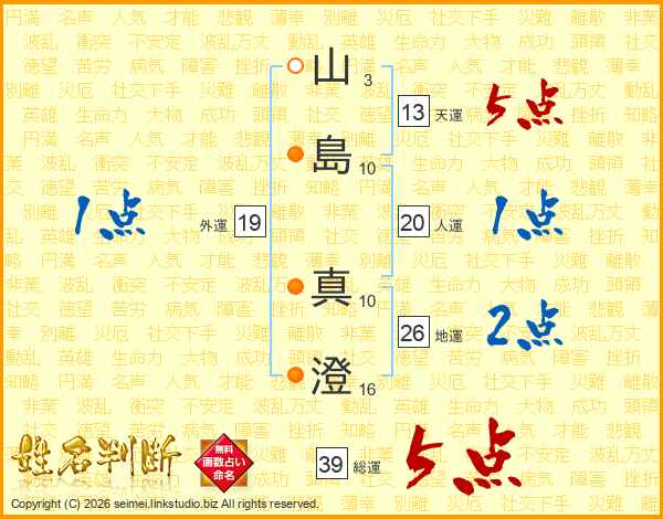 山(3画)島(10画) 真(10画)澄(16画)