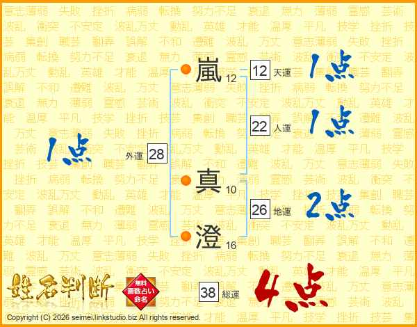 嵐真澄さんの総運は38画の4点!