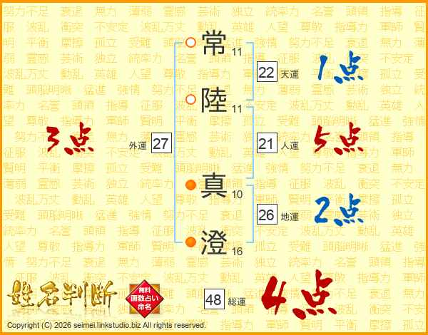 常陸真澄さんの地運は26画の2点!