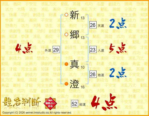 新郷真澄さんの地運は26画の2点!