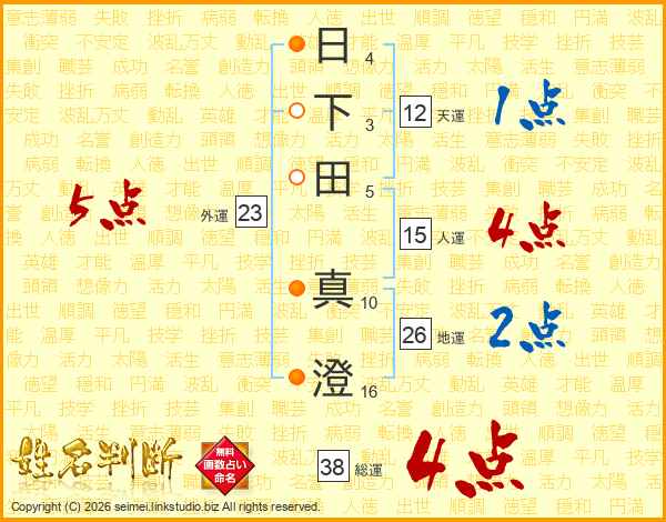 日(4画)下(3画)田(5画) 真(10画)澄(16画)