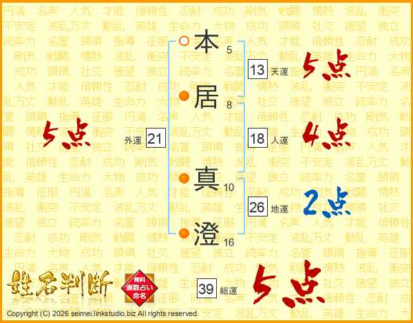 本(5画)居(8画) 真(10画)澄(16画)