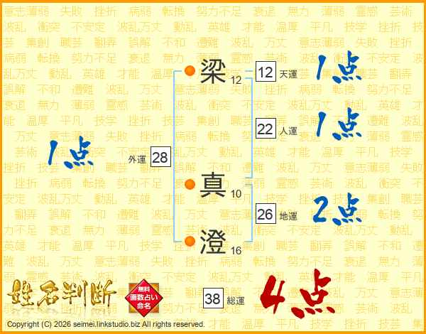 梁真澄さんの総運は38画の4点!