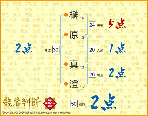 榊(14画)原(10画)  真(10画)澄(16画)