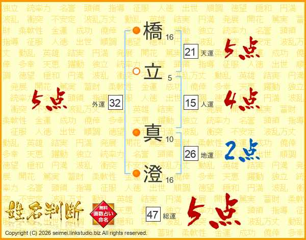 橋(16画)立(5画) 真(10画)澄(16画)