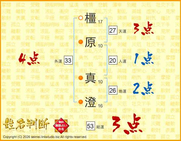 橿原真澄さんの地運は26画の2点!