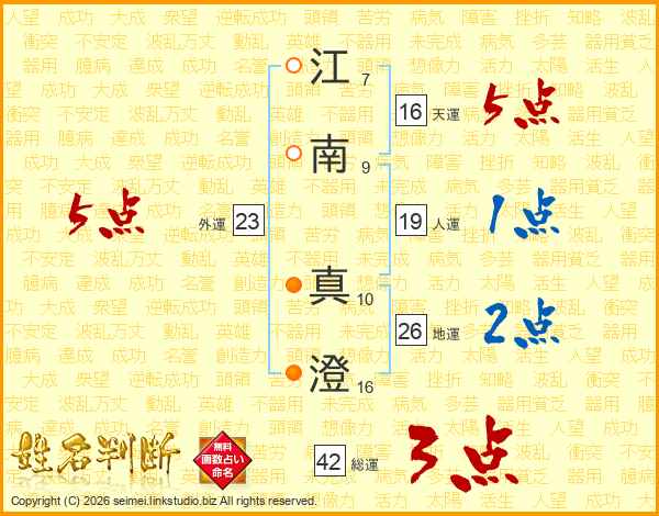 江南真澄さんの天運は16画の5点!