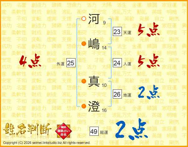 河(9画)嶋(14画) 真(10画)澄(16画)