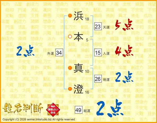 浜(18画)本(5画) 真(10画)澄(16画)