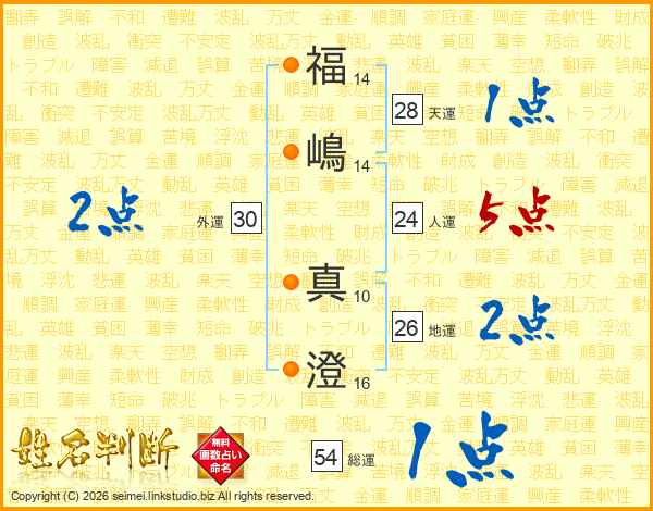 福(14画)嶋(14画) 真(10画)澄(16画)