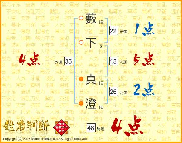 藪下真澄さんの総運は48画の4点!
