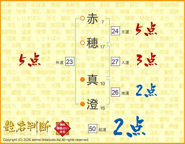 赤(7画)穂(17画) 真(10画)澄(16画)