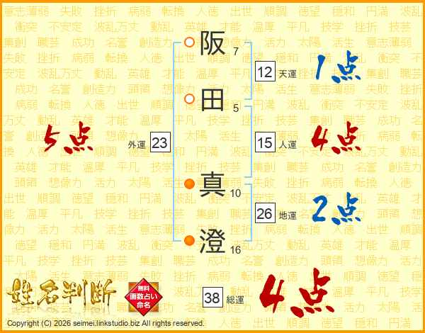 阪田真澄さんの総運は38画の4点!