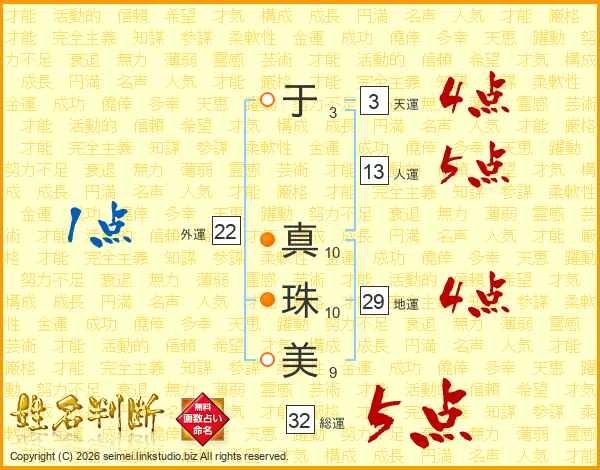 于真珠美さんの総運は32画の5点!
