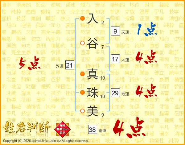 入谷真珠美さんの総運は38画の4点!