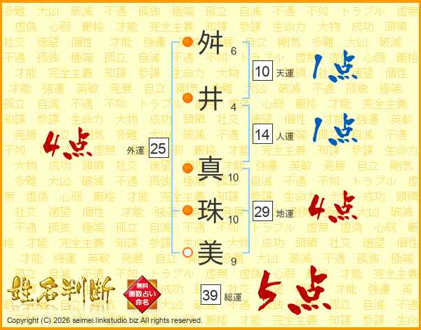 舛(6画)井(4画) 真(10画)珠(10画)美(9画)