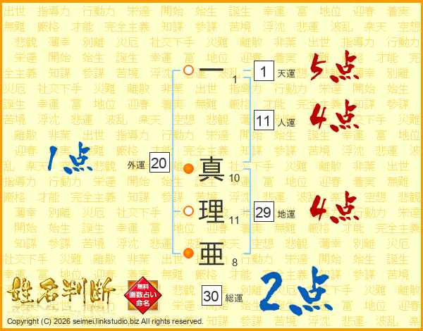 一真理亜さんの天運は1画の5点!