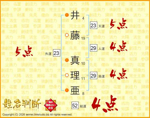 井藤真理亜さんの総運は52画の4点!