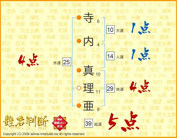 寺内真理亜さんの総運は39画の5点!