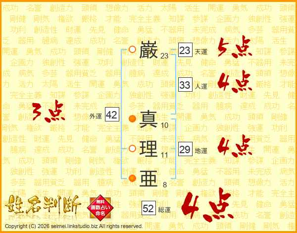 巌(23画) 真(10画)理(11画)亜(8画)