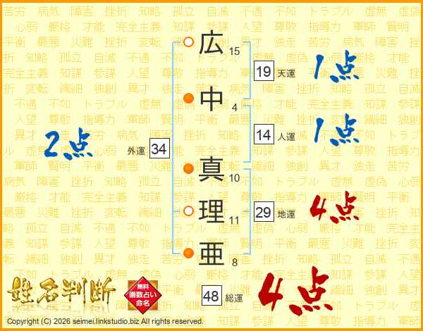 広中真理亜さんの総運は48画の4点!