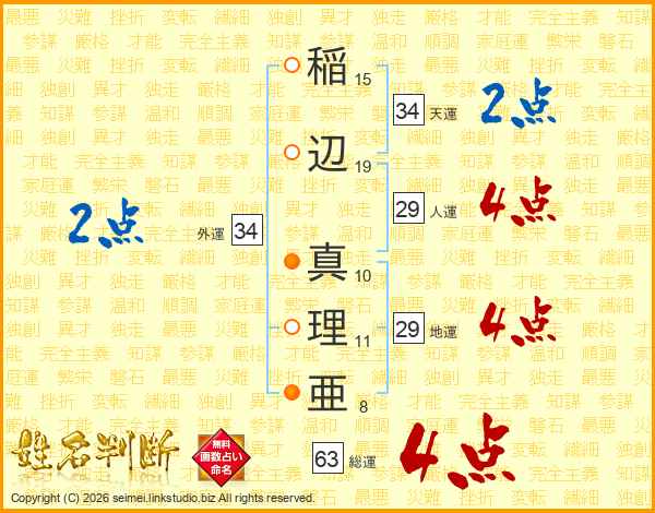 稲辺真理亜さんの総運は63画の4点!