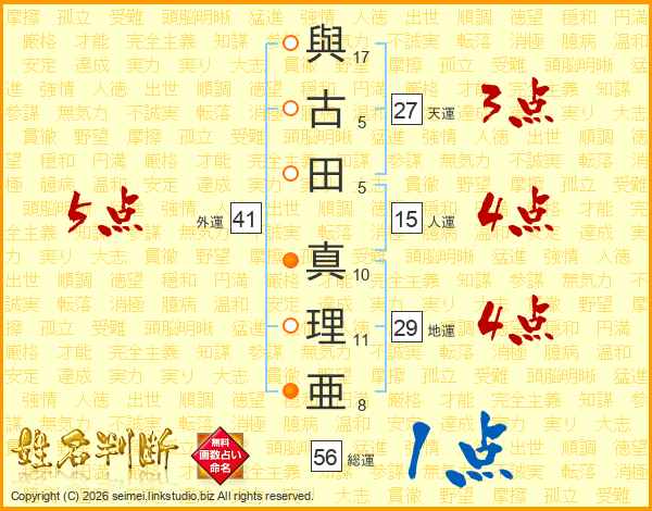 與古田真理亜さんの外運は41画の5点!