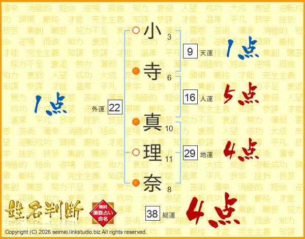 小(3画)寺(6画) 真(10画)理(11画)奈(8画)