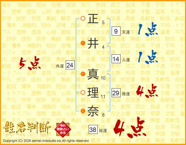 正井真理奈さんの総運は38画の4点!