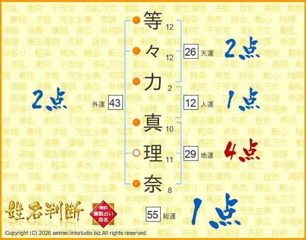 等々力真理奈さんの天運は26画の2点!