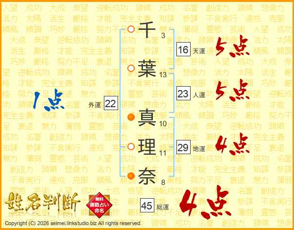 千葉真理奈さんの総運は45画の4点!