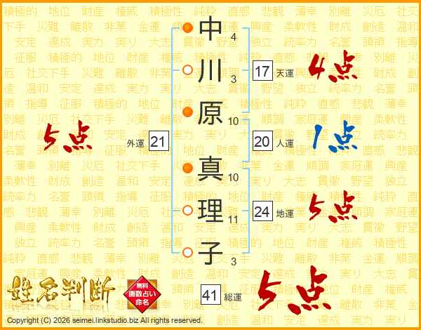 中川原真理子さんの総運は41画の5点!