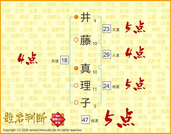 井藤真理子さんの総運は47画の5点!